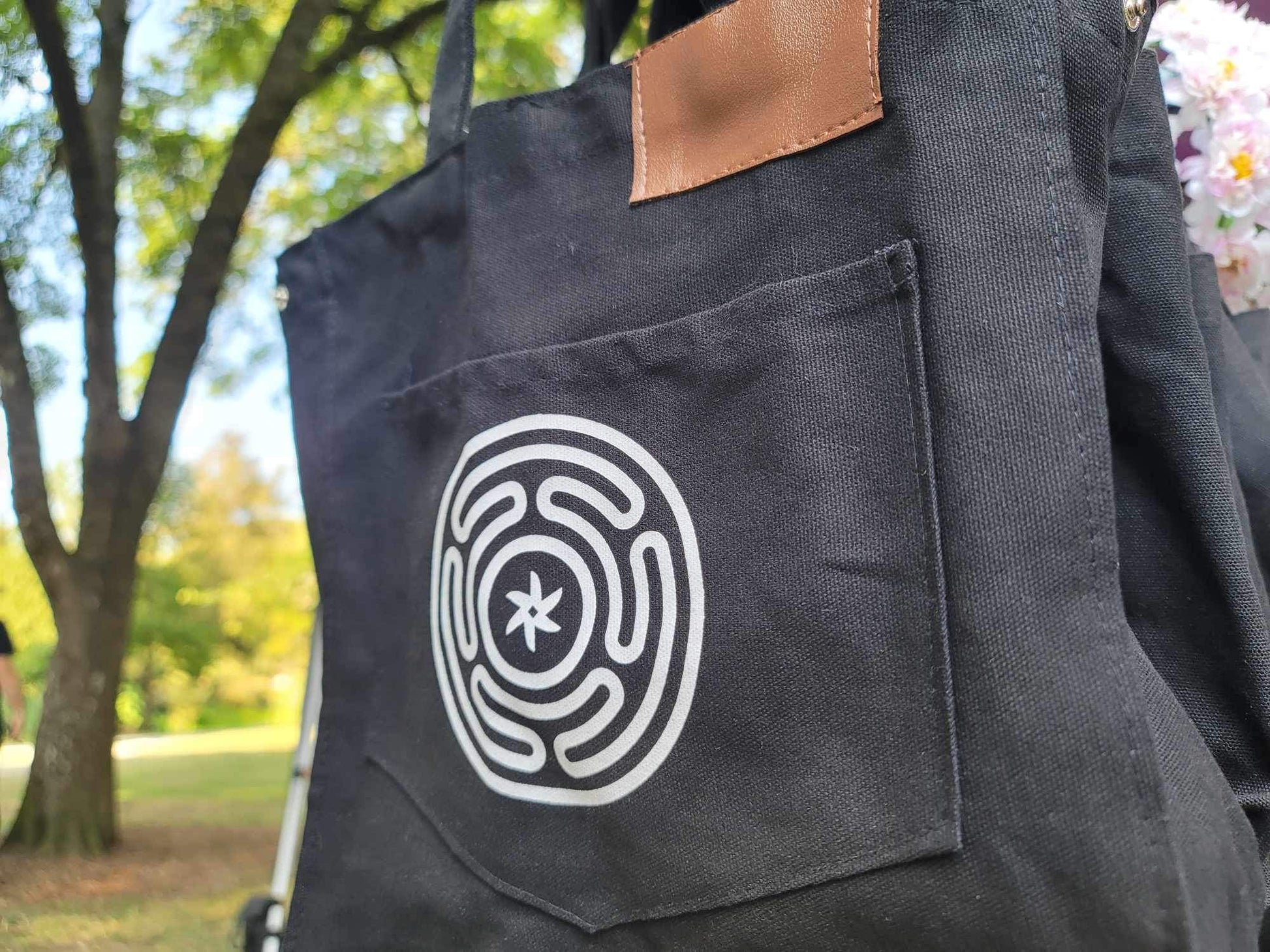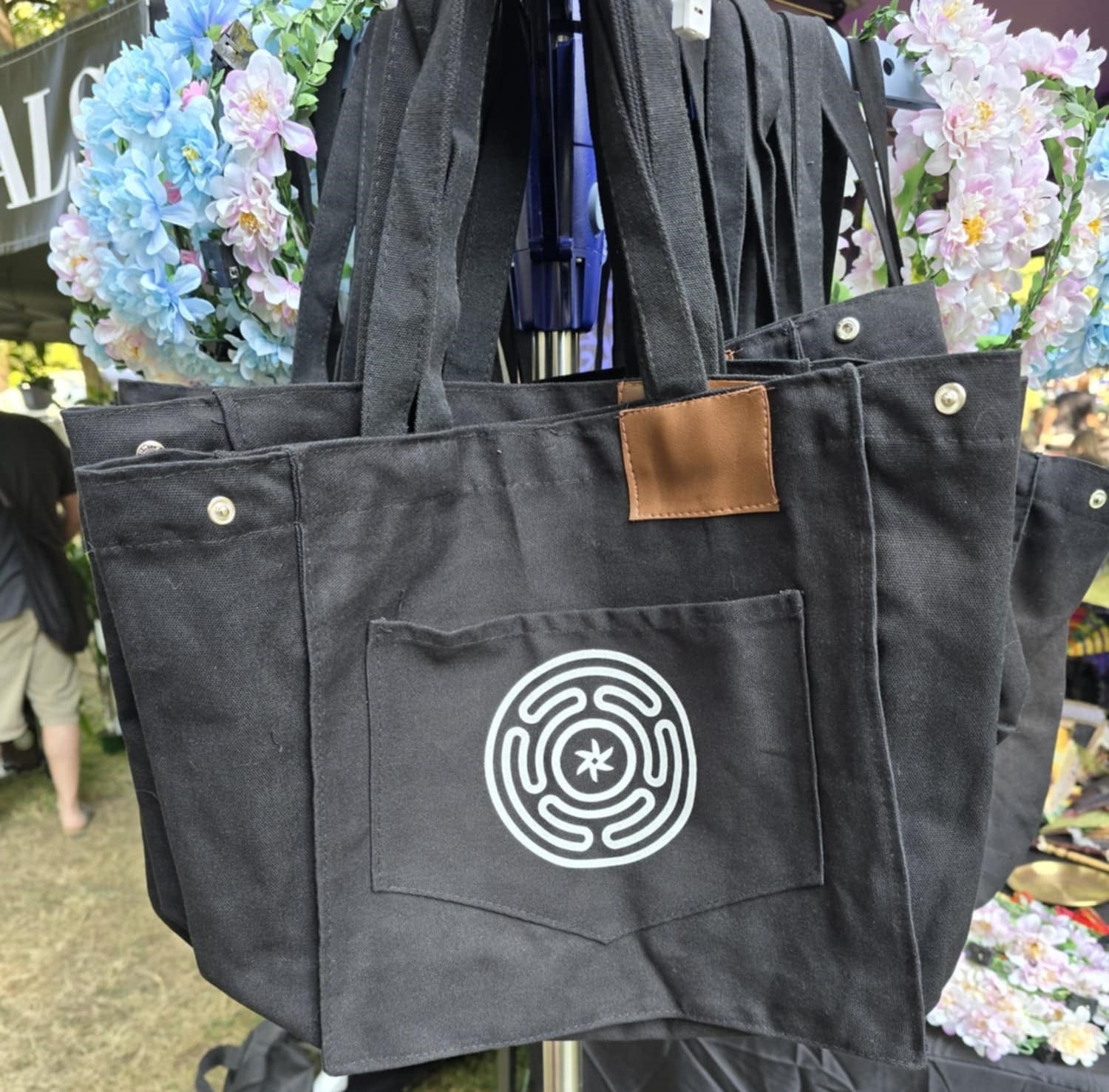 This magical bag has 3 pockets (two inside one that zips and one outside) and is perfect for keeping your robes, jewelry and magical items all in one place, or as an everyday bag to compliment your witchy wardrobe. The Strophalos is a seal of Hekate and is designed to ward off danger, protect the contents, and keep the traveler safe on magical adventures.