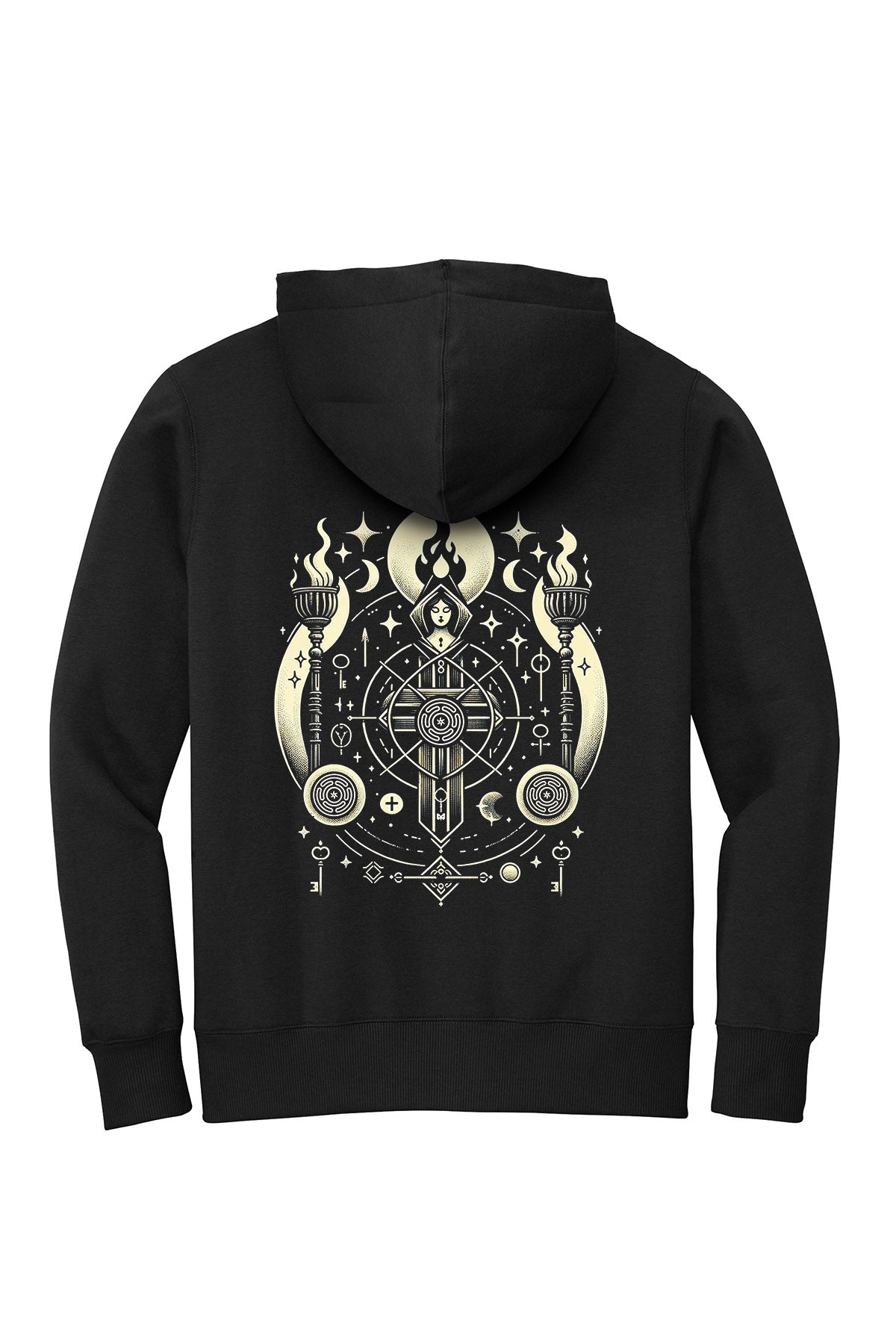 Snuggle up in this magically adorned Hekate Hoodie or Sweatshirt. Wear symbols of empowerment and walk between the worlds into Her realm. Gain knowledge unknown and wisdom unseen directly from the Goddess of Witchcraft.